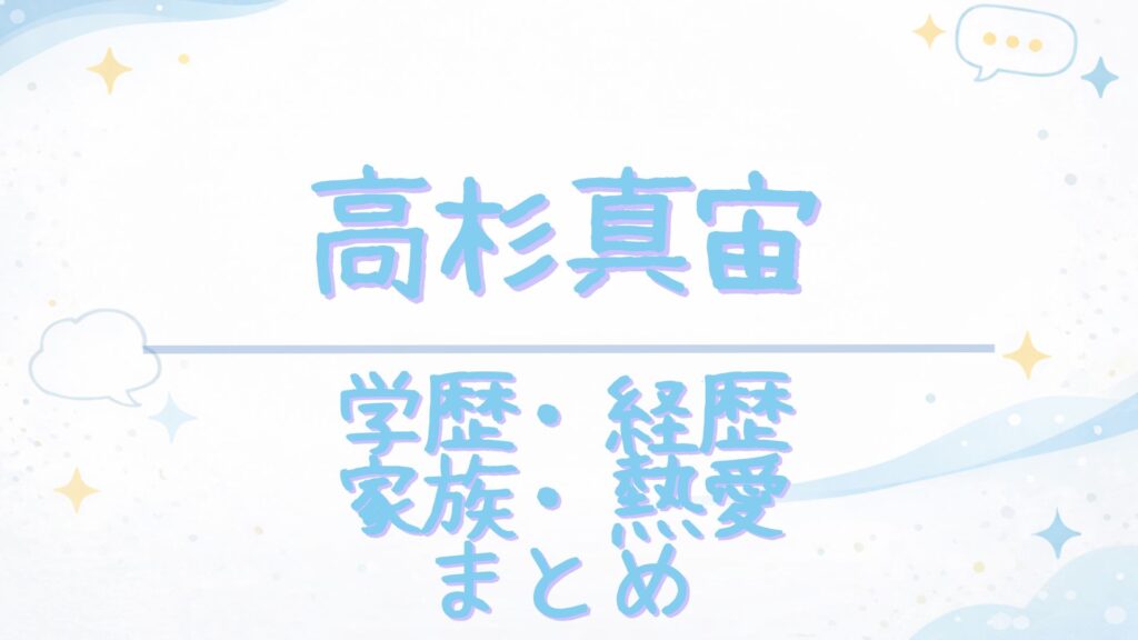 ※このページは、高杉真宙さんの「学歴・経歴」と「家族・恋愛」を短時間で把握するための整理ページです。詳細な根拠・出典は、下の個別記事(学歴/家族)で確認できます。 高杉真宙さんといえば、2009年のデビュー以降、ドラマ・映画・舞台まで幅広く活躍...