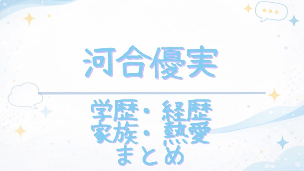 ※このページは、河合優実さんの「学歴・経歴」と「家族・恋愛」を短時間で把握するための整理ページです。詳細な根拠・出典は、下の個別記事(学歴/家族)で確認できます。 近年、映画やドラマで一気に存在感を増している女優・河合優実さん。「どんな学校... -