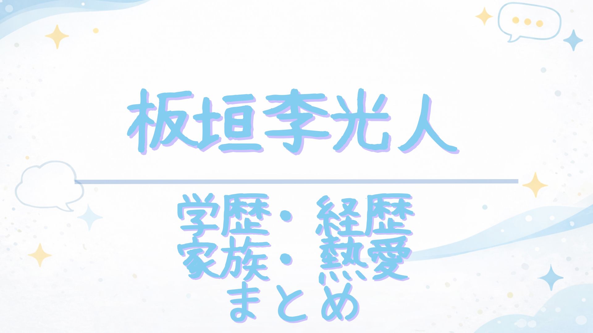 ※このページは、板垣李光人さんの「学歴・経歴」と「家族・恋愛」を短時間で把握するための整理ページです。