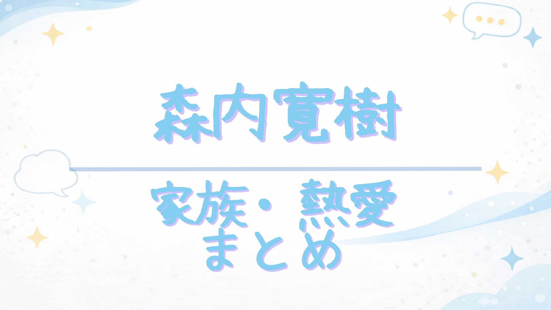 この記事では、森内寛樹さんの家族、結婚・恋愛、交友関係について整理しました。